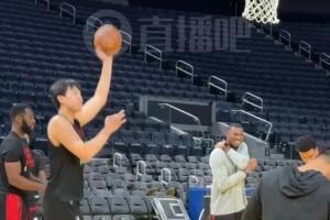 🤣我转悠!杨瀚森训练投进三分后 一路散步跟俩助教互动