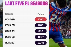 本赛季英超等待掷界外球的平均时间为11.21秒,近5年最久